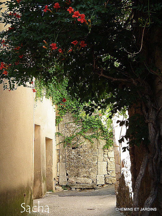 De calades défoncées en passant par de vieilles maisons maquillées de treilles voluptueuses et de rosiers aux teintes tendres , mon regard s'attardait tantôt admiratif , parfois curieux de cette vie si bien cachée derrière ces gros murs décrépis , je croisais avec délice de ces biens jolis petits coins poétiques ou il fait si bon se poser sur un banc pour écrire des lettres embaumées de soleil et de senteur lavande , lettres qui resteront toujours à dormir à l'ombre du disque dur de l'ordi ....